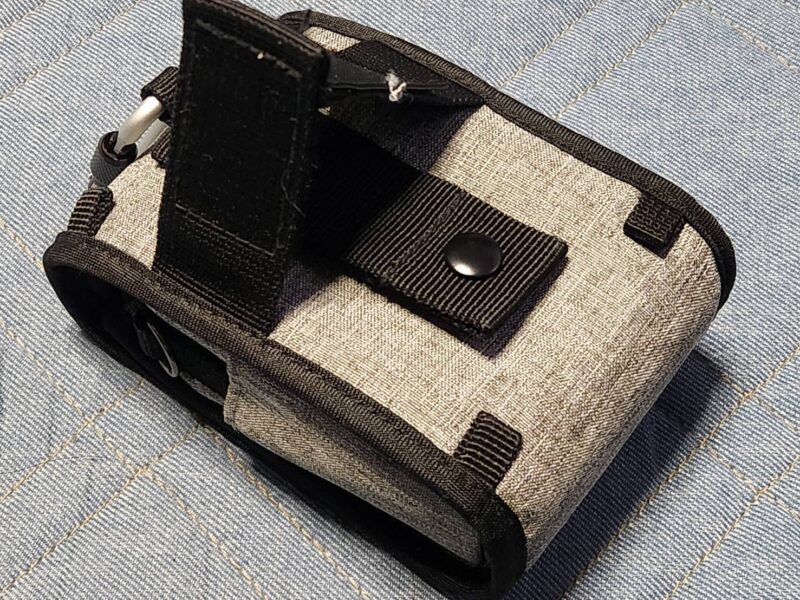 このポーチはAmazonで1000円くらいだったかな、カラビナも付いてるし裏面はマジックテープ式でもありズボンなどに装着でき、すぐ取り出したい時に便利なポーチなんだ