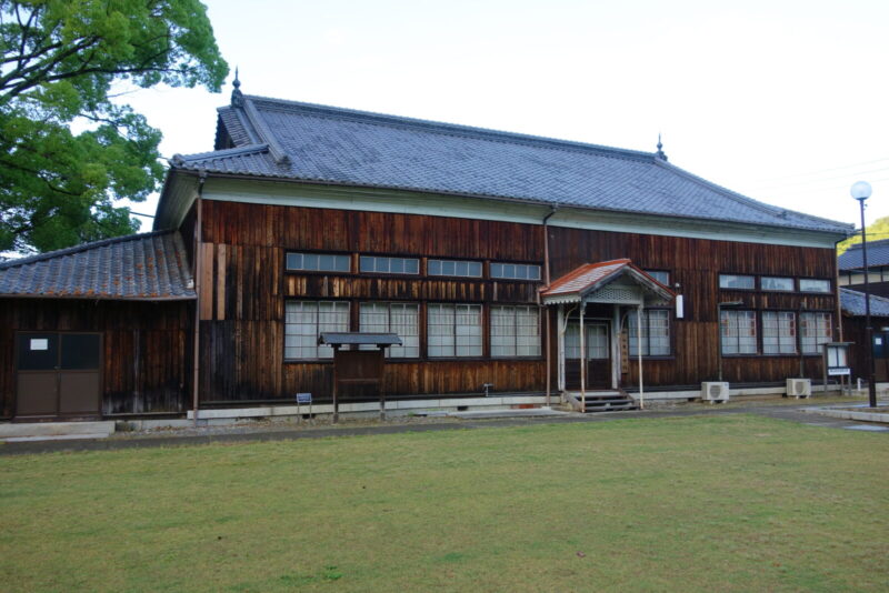 岩国高校記念館という建物ですね、入口の横の立札は横山自治会館と書かれています