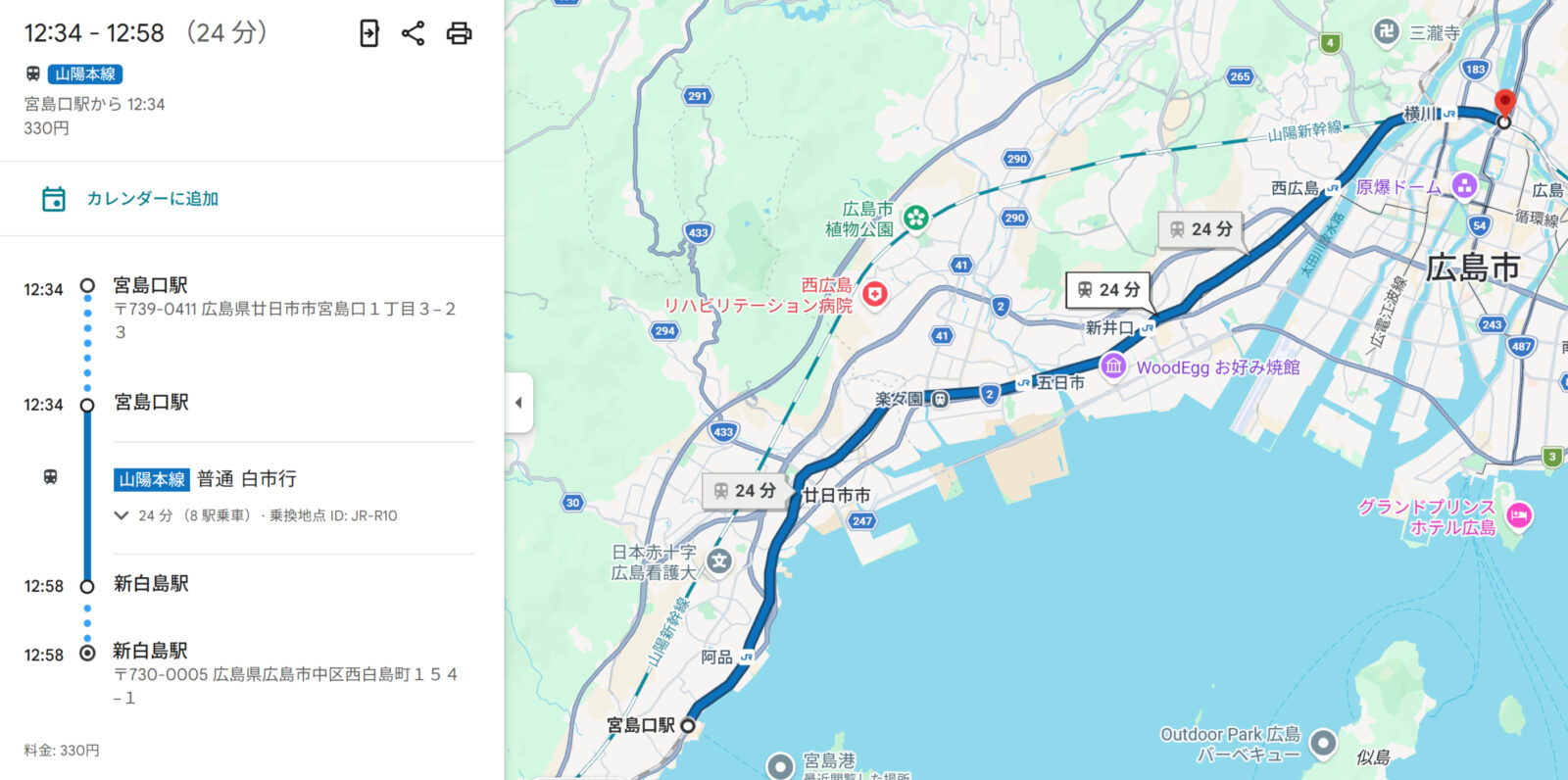 フェリーで戻ってきた後、宮島口駅から広島の原爆ドームなどを見学しに新白島駅へ向かいます