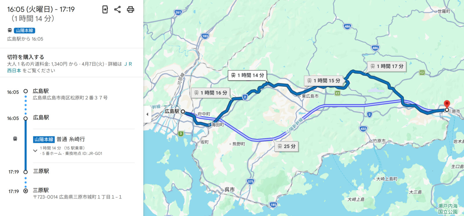 原爆ドームなどを見学したら広島駅へ向かい、[山陽本線]三原駅へ到着後、三原国際ホテルにチェックインです。