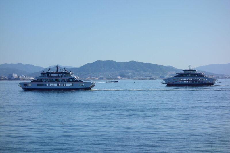 あのフェリーでしょうか?1時間に4本ぐらいでてるみたいで、島巡りを経験してきたるんにとってはあまりの本数の多さに驚いてました