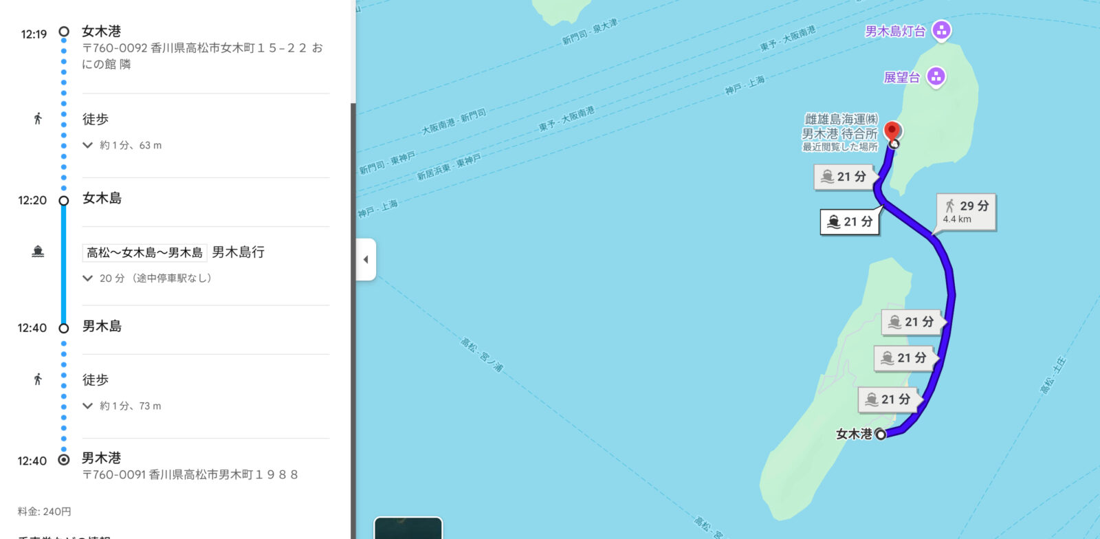 女木島を観光して、フェリーの時間になったら男木島行きのチケットを購入して男木島へ移動します