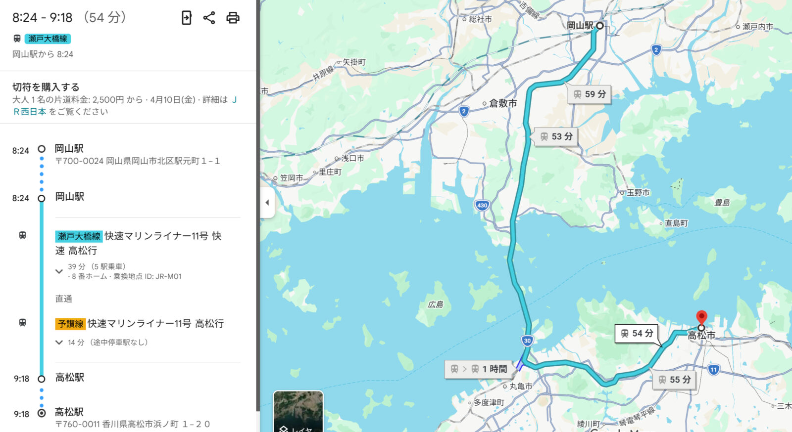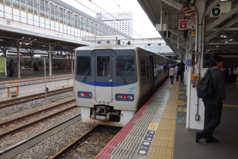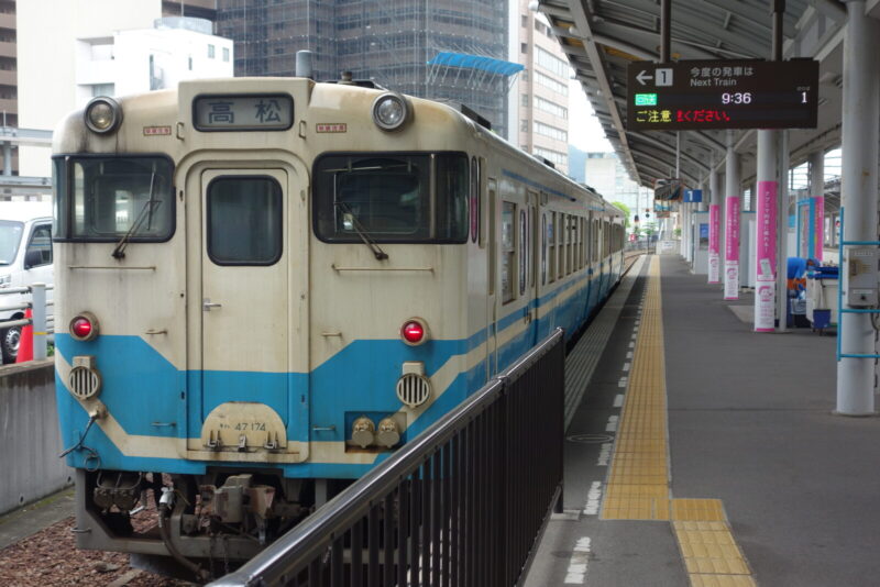 本日のルートは女木島、男木島へ向かうために、岡山駅から四国の高松駅へ快速マリンライナーで一気に移動します。