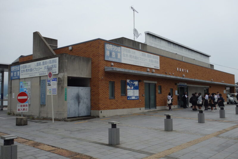 あの奇抜な建物は男木港 待合所、帰りの時間を確認してからさっそく行動開始