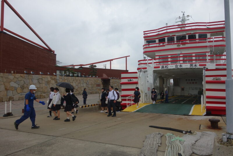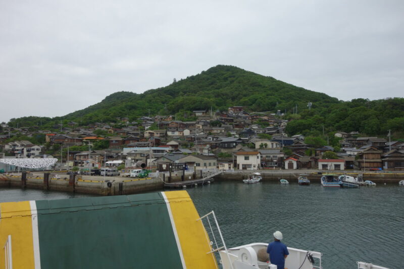 曇天模様の空ですが時刻は12時過ぎ、男木島行きのフェリーへ乗船します。次はどんな島なのか