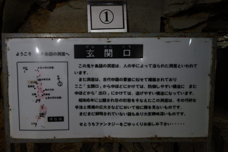 玄関口の案内を読み、二人は洞窟内を進みます