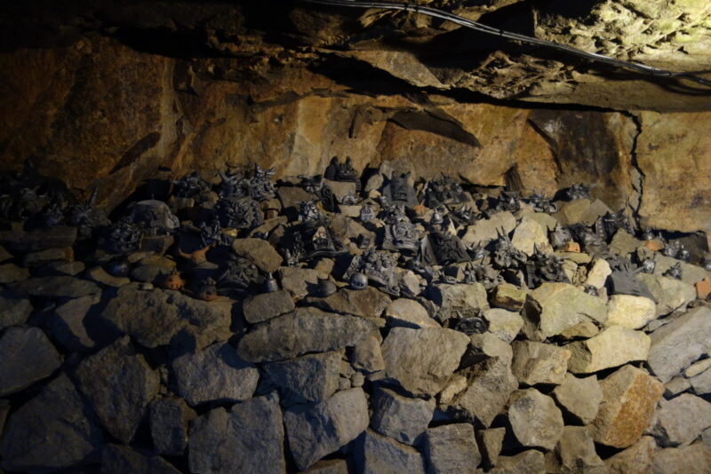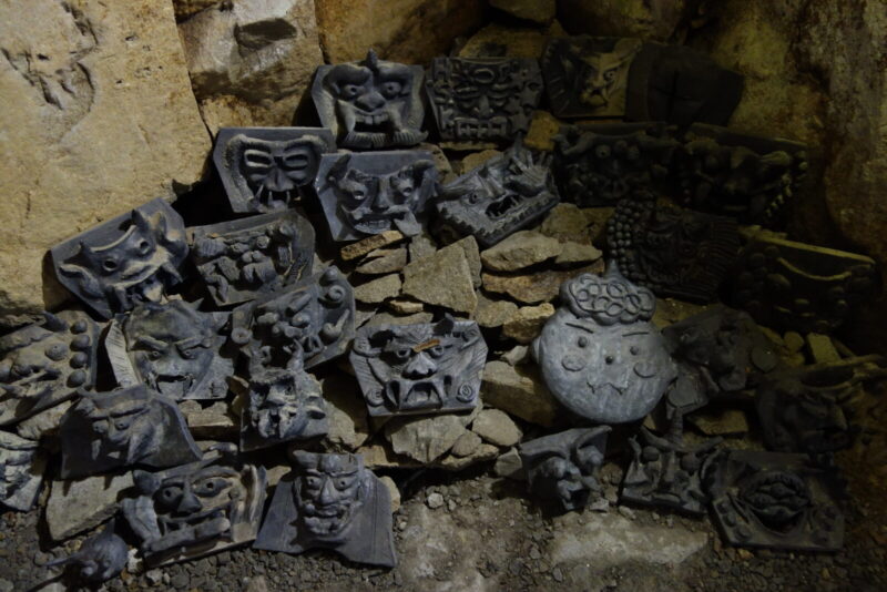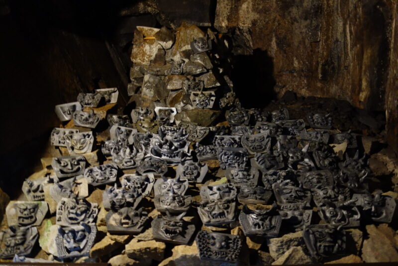 洞内には鬼の顔のような瓦がいたるところにたくさん置いてあります