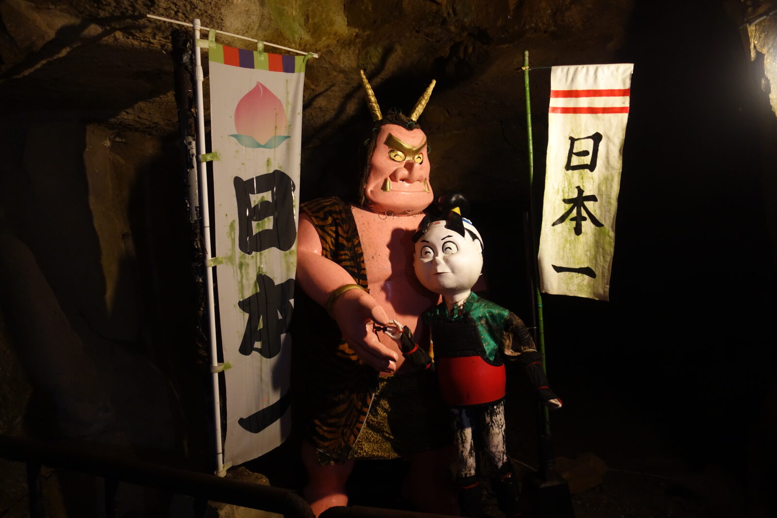 なぜか出口付近で仲直りしている事になっている桃太郎と鬼の図