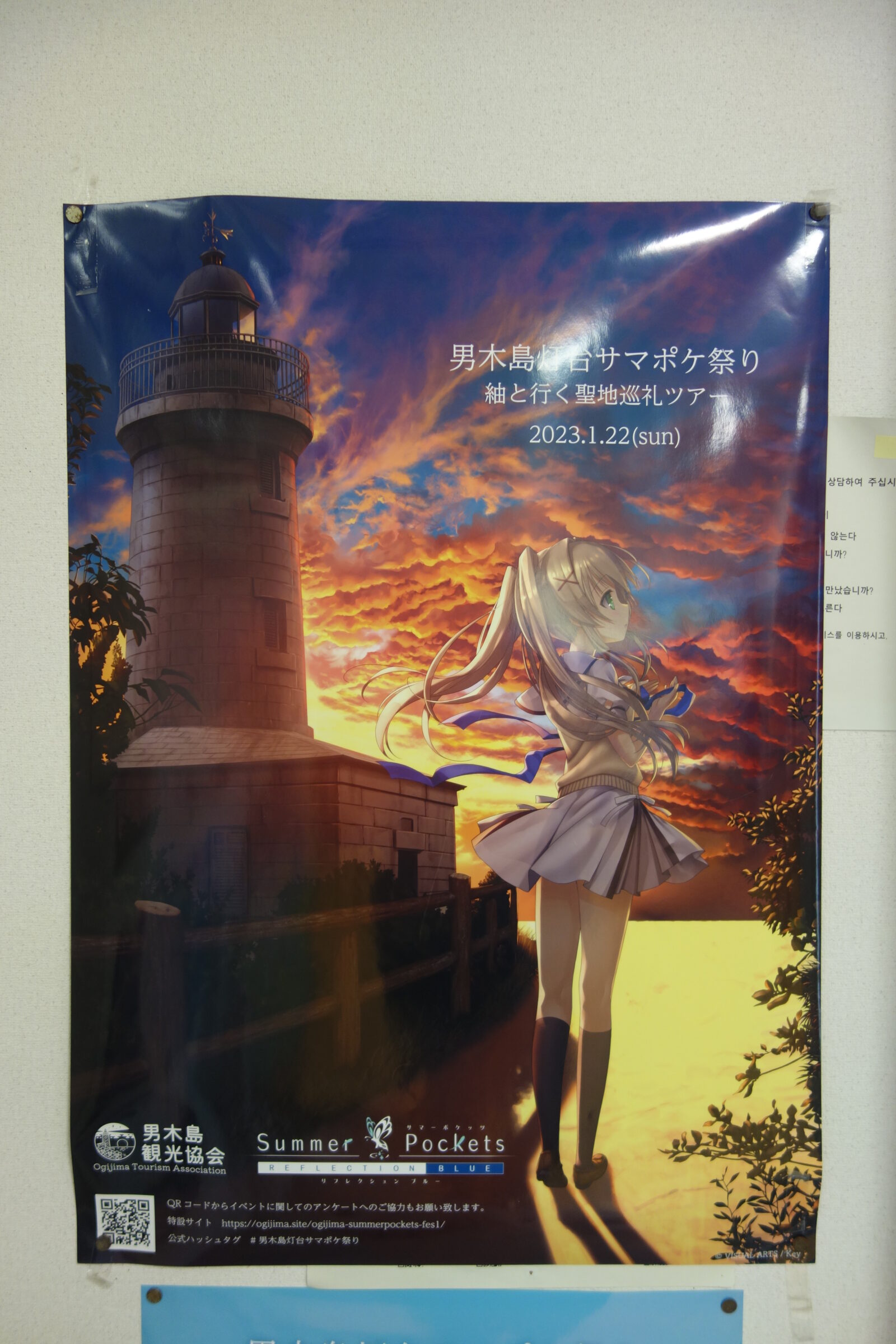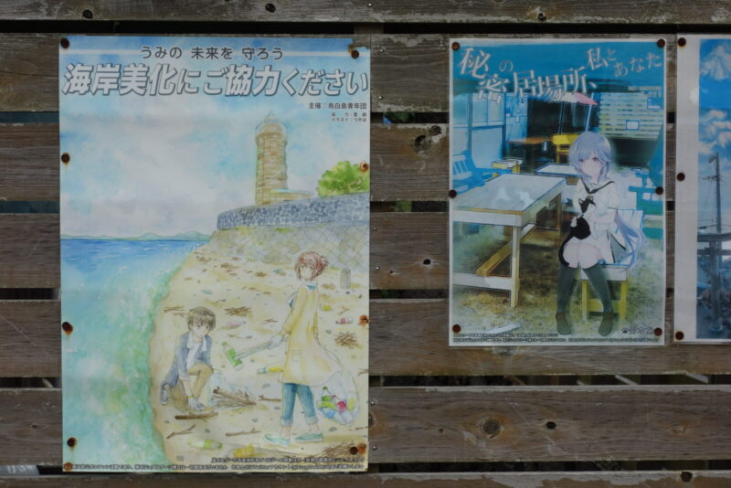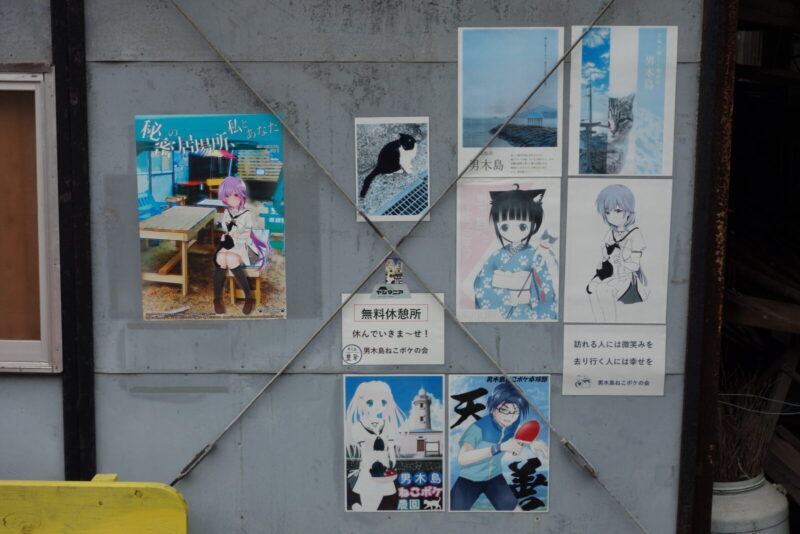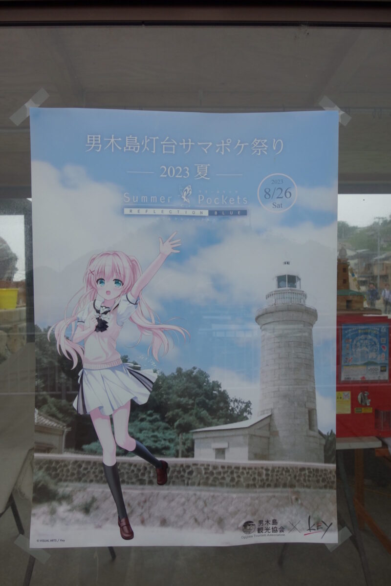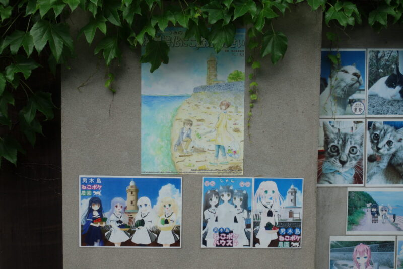 つ、つむぎ(紬)ちゃんがいた「ようこそ男木島へ」だって、去年のポスター?なんか色あせてる~(;´Д`)