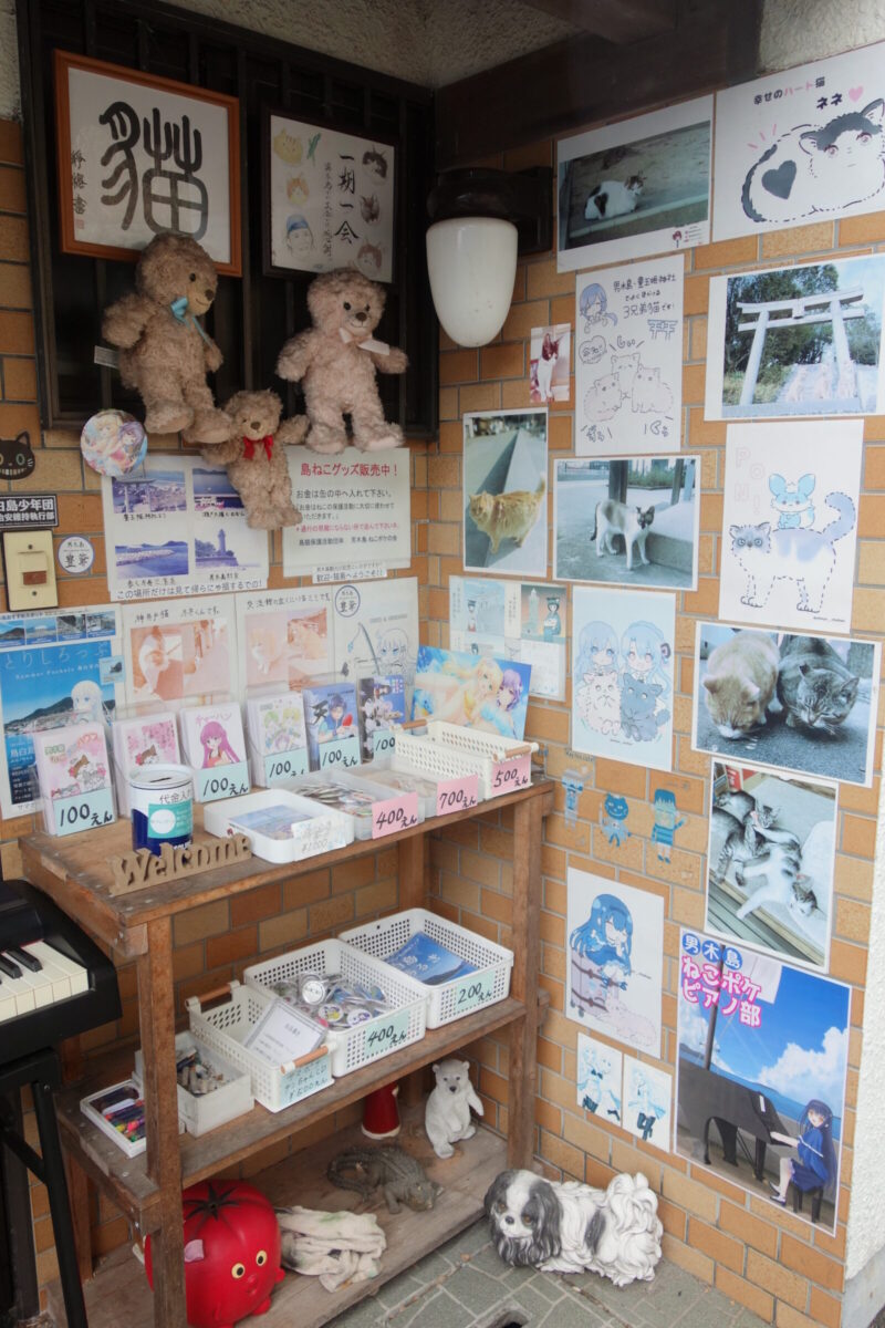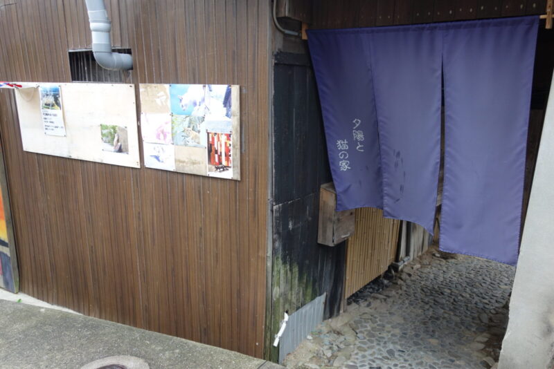 灯台から戻ってきた二人は帰りのフェリー乗船時間まで色々見てまわる事に、コーヒーショップ夕陽と猫の家を横切り