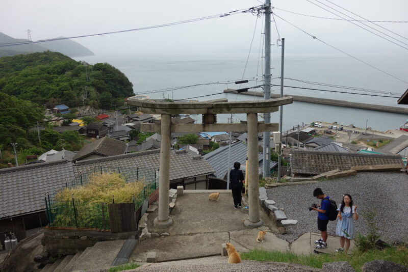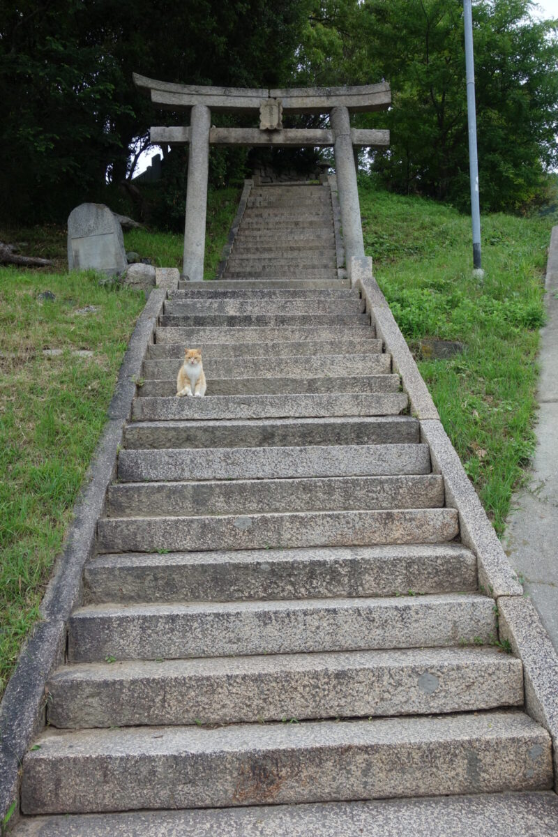 豊玉姫神社へ到着、階段のところに猫ちゃんがいますね撮影できるでしょうか
