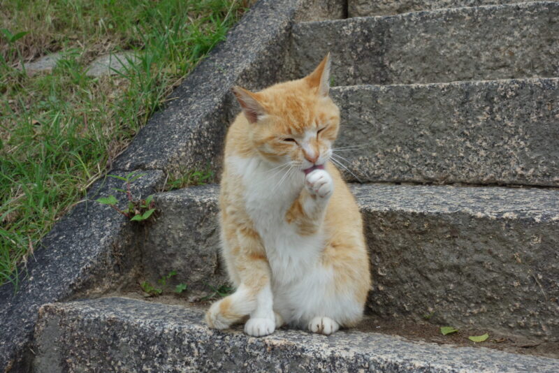 島猫の警戒心の無さのおかげで撮影できました