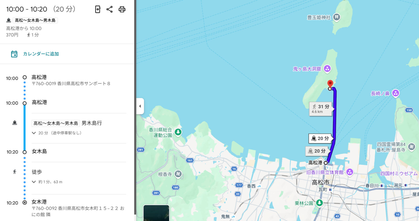 ❷いざ女木島へ (サマポケの聖地へ①)
