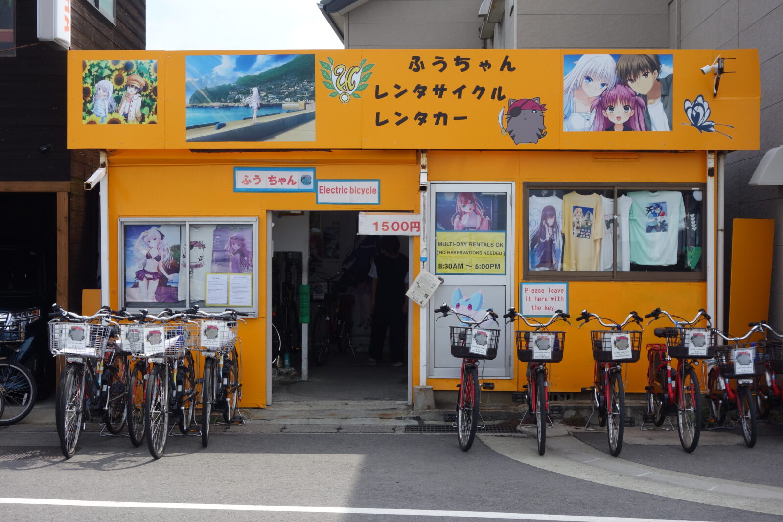 さて直島は広いのでレンちゃんを借りにいかないといけません、港付近に数店舗のレンタサイクル店がありますが、、、やはりるんが選ぶのはこの店だった