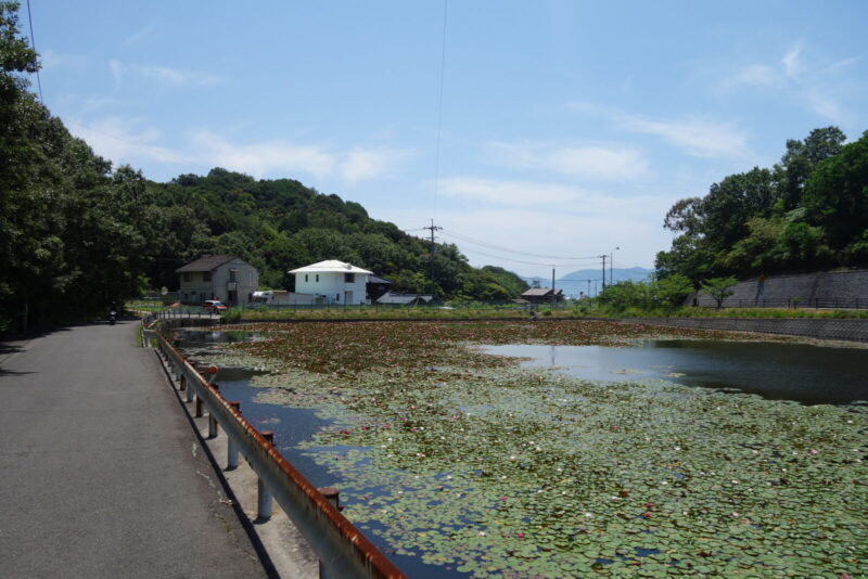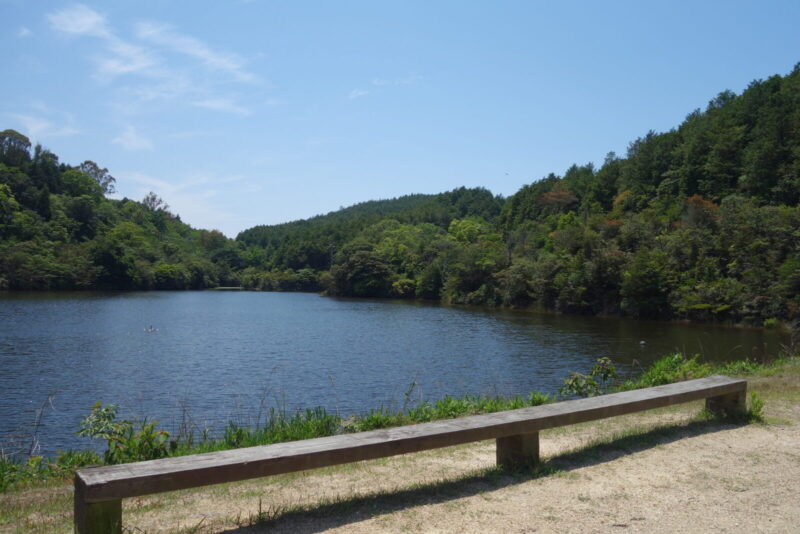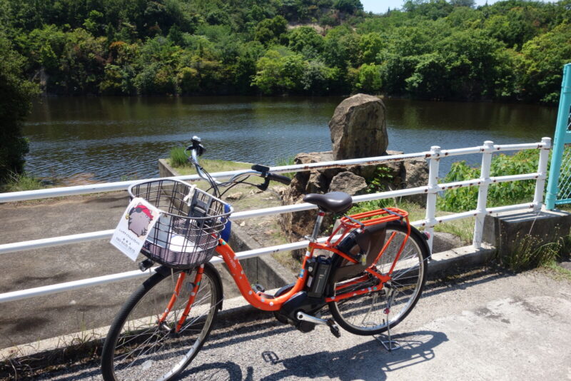 電動自転車でも上りが続くと結構疲れます、すこしここの広木池で水分補強しましょう