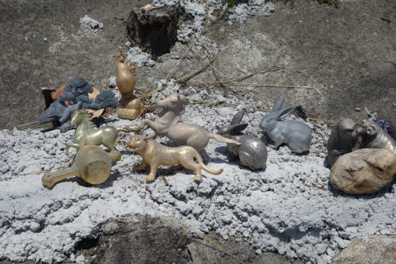 海沿いから少しはずれると、田舎道みたいな景色へと突然変わりました。そのまま道なりに進んでいくと何やらアート作品みたいな建物が観光客が並んでいますが