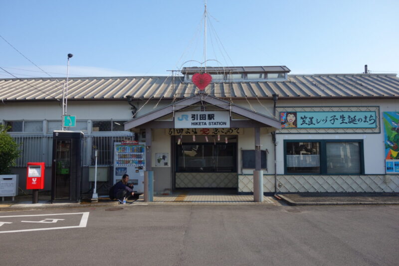 1時間半ほど電車に揺られて時刻17:00過ぎ引田駅に到着、この後は鳴門駅までバスで移動します