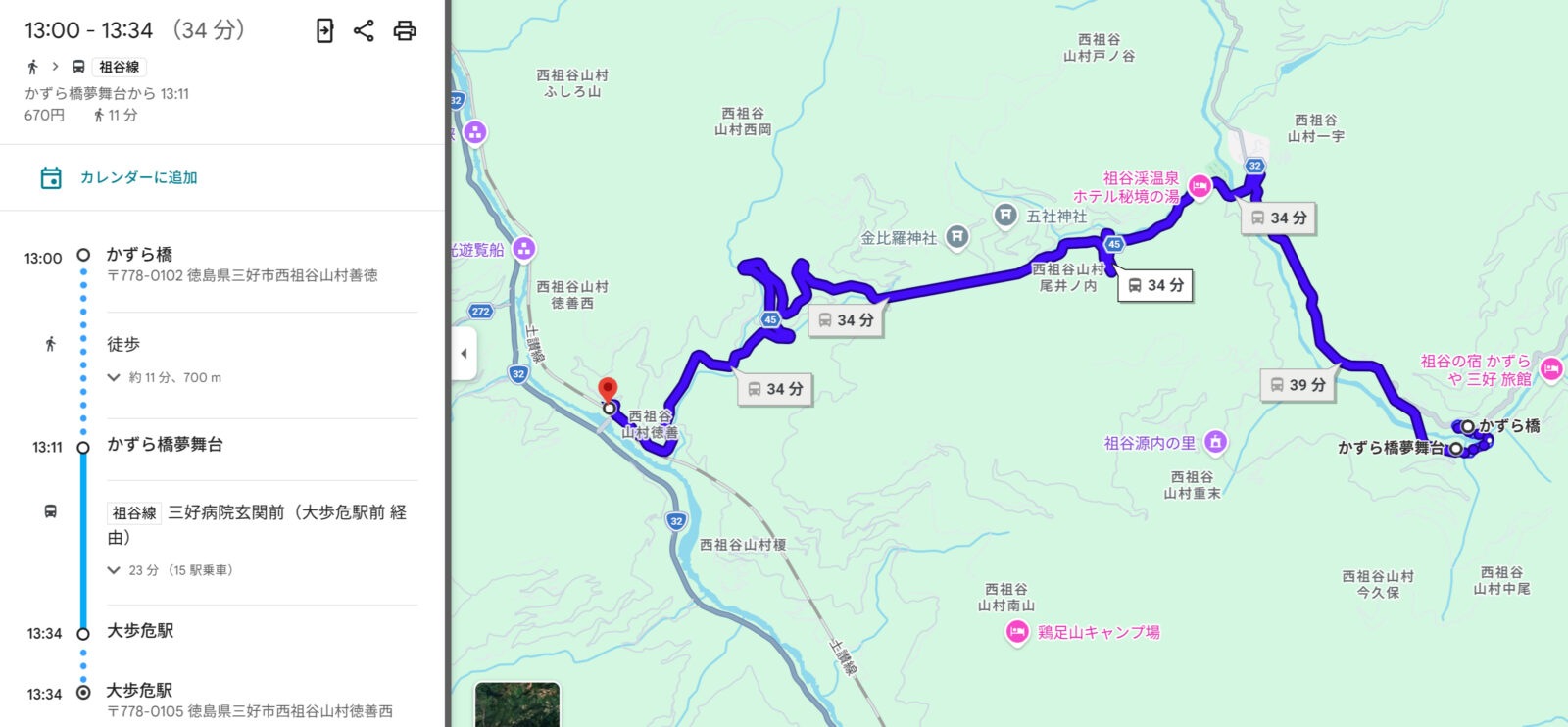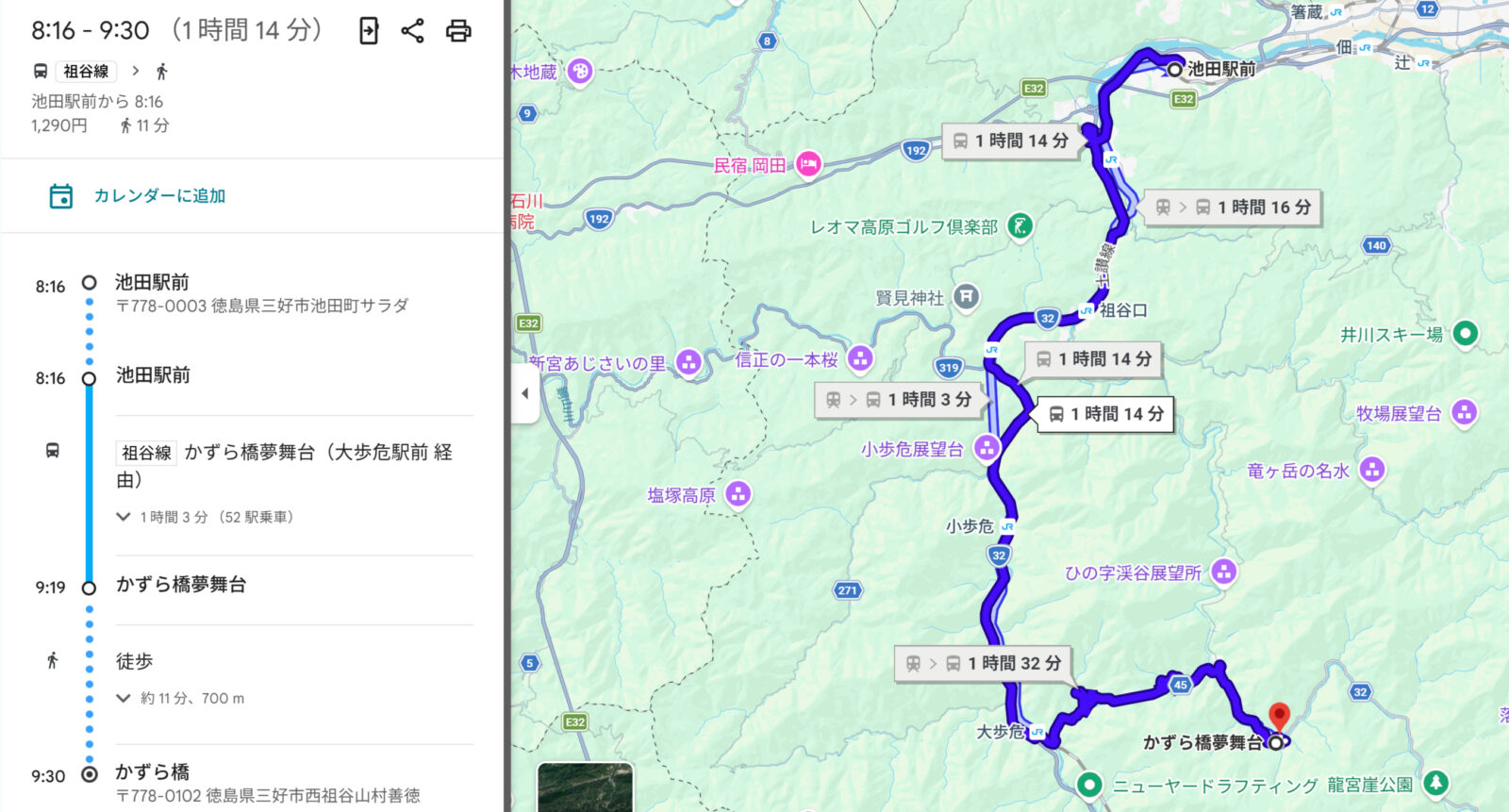 今回祖谷のかずら橋に行こうと思って計画を立てました