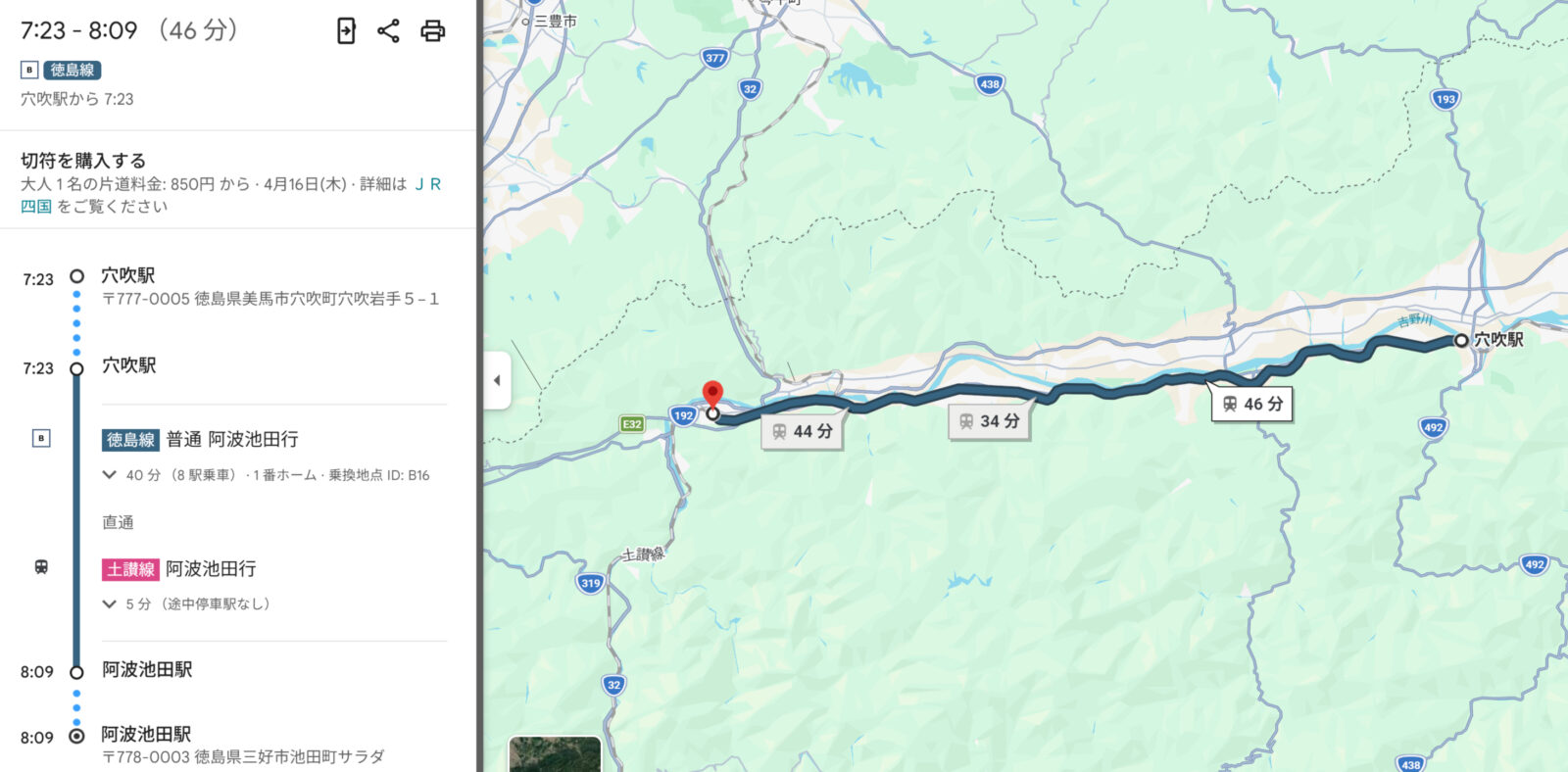 午前中は穴吹駅➡阿波池田駅へ電車移動、池田駅前➡かずら橋へバス移動します。