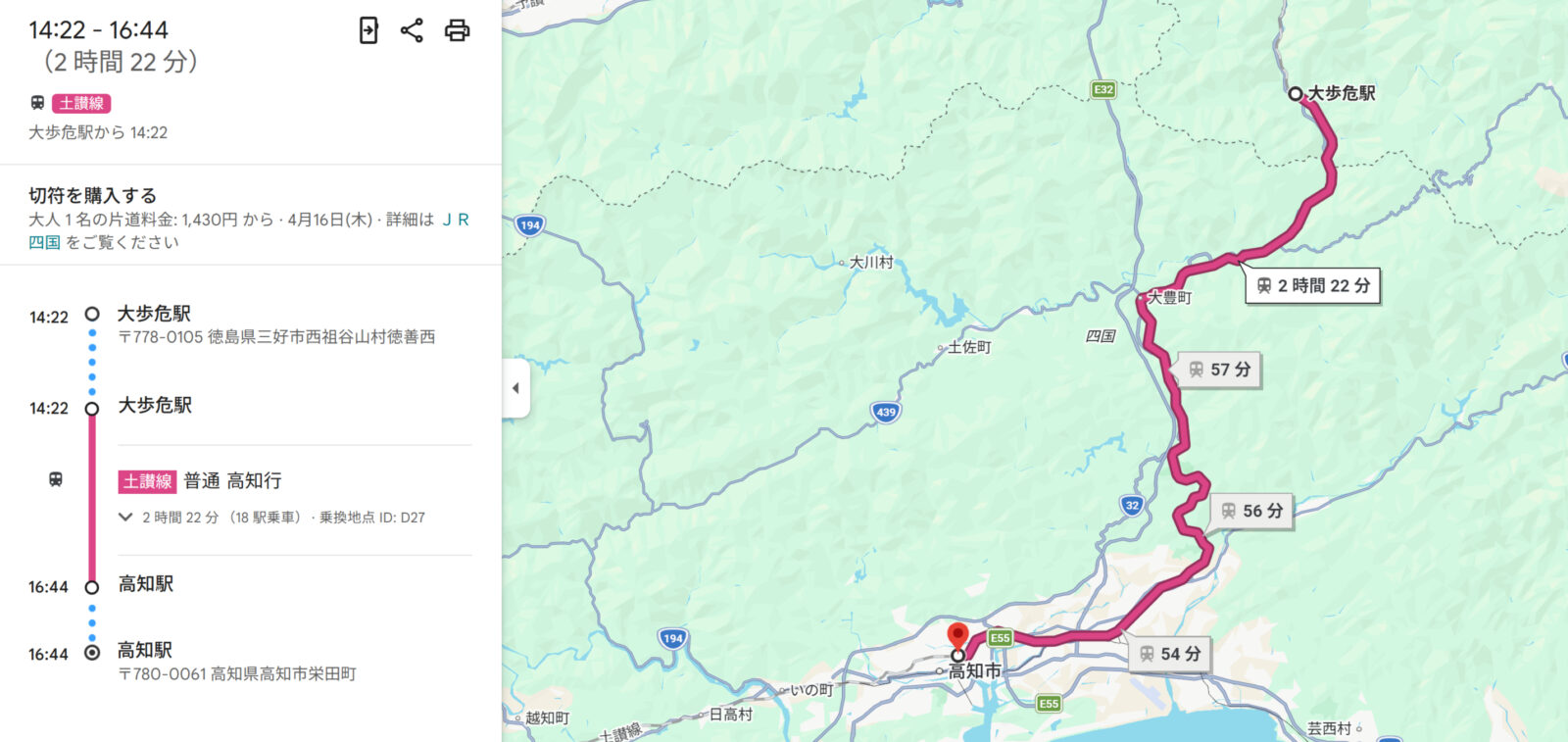 午後からかずら橋➡大歩危駅バス停へバス移動、大歩危駅➡高知駅へ電車移動します。
