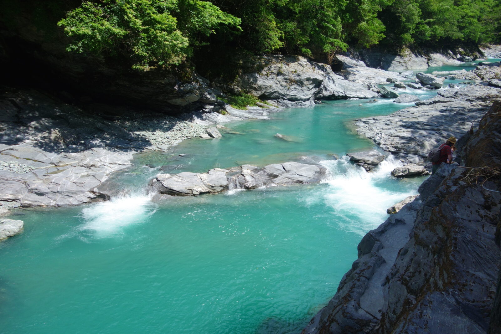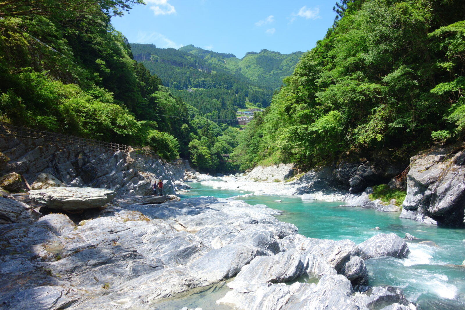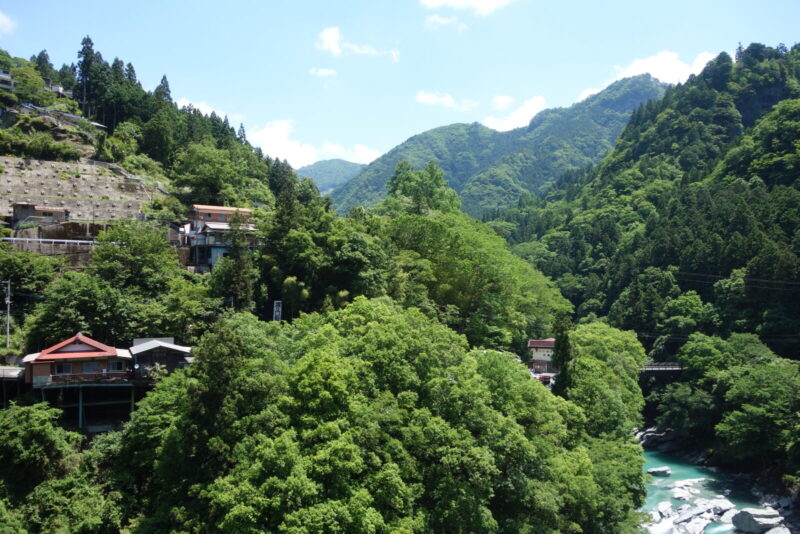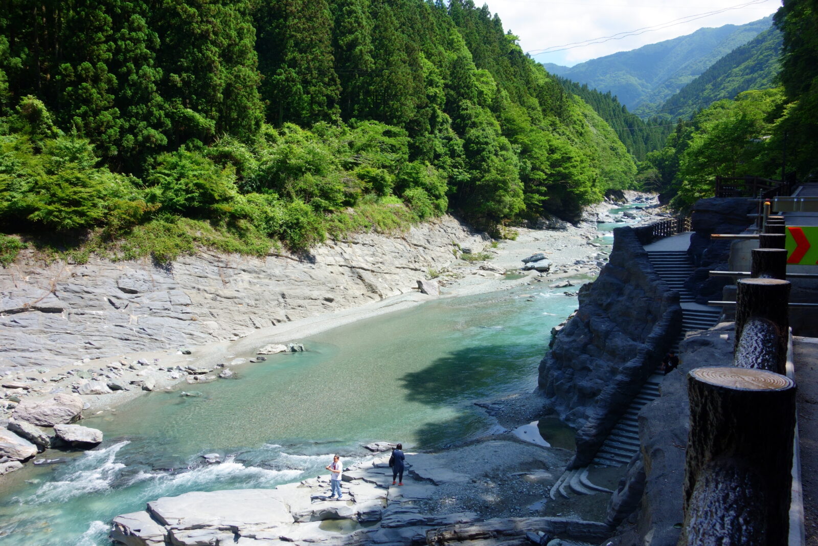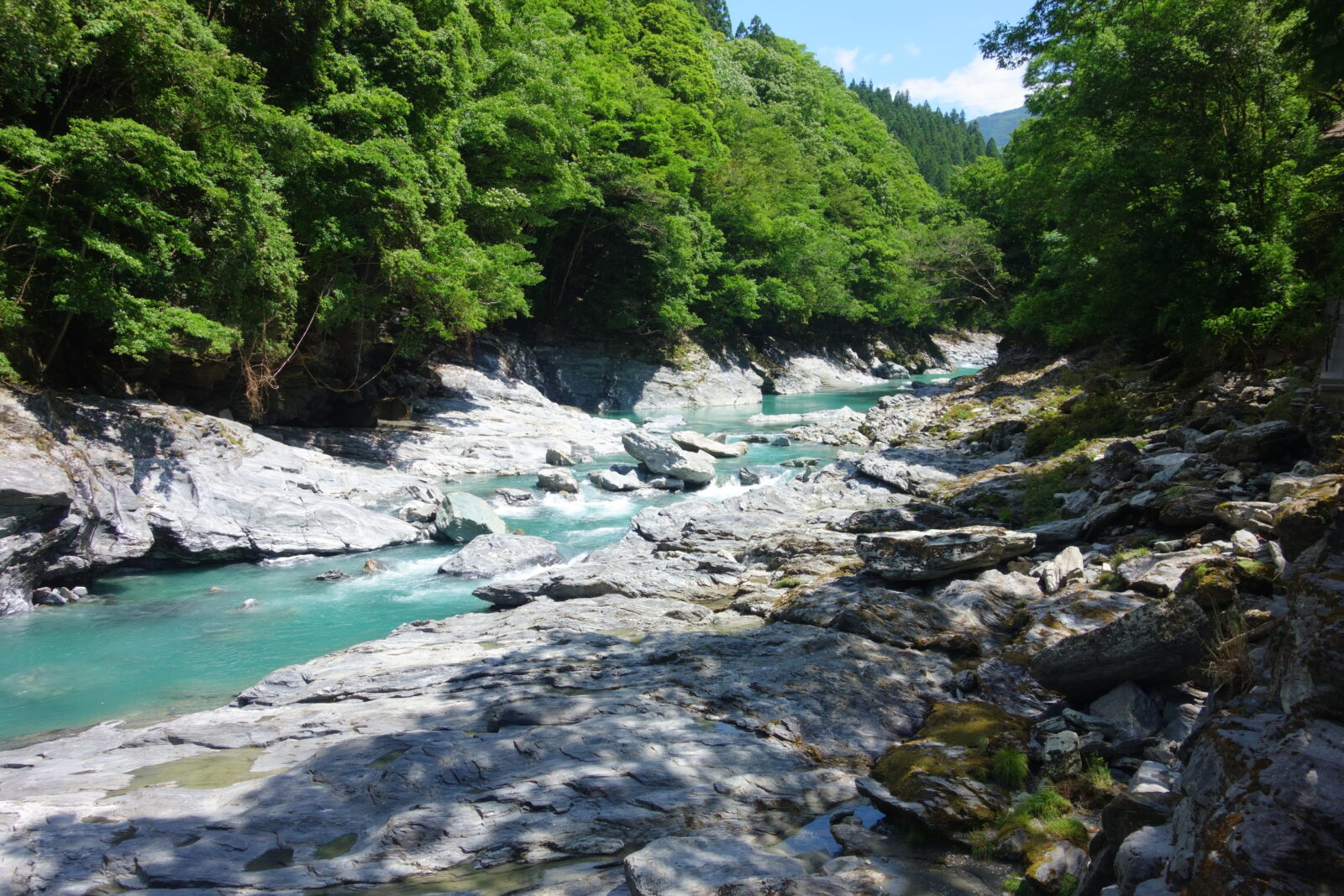 現在はかずら橋から数分の距離にいます、これから真横を流れている祖谷川の景色を紹介していきます。目を疑いたくなるような澄んだ透明の川ですよ