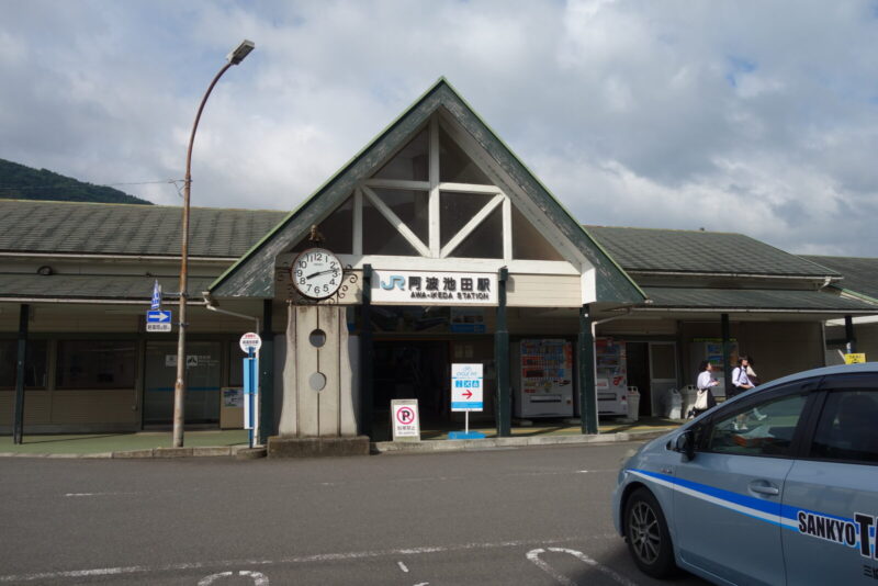 二人は天気の心配をしながら穴吹駅へ、電車で阿波池田駅へ向かいます