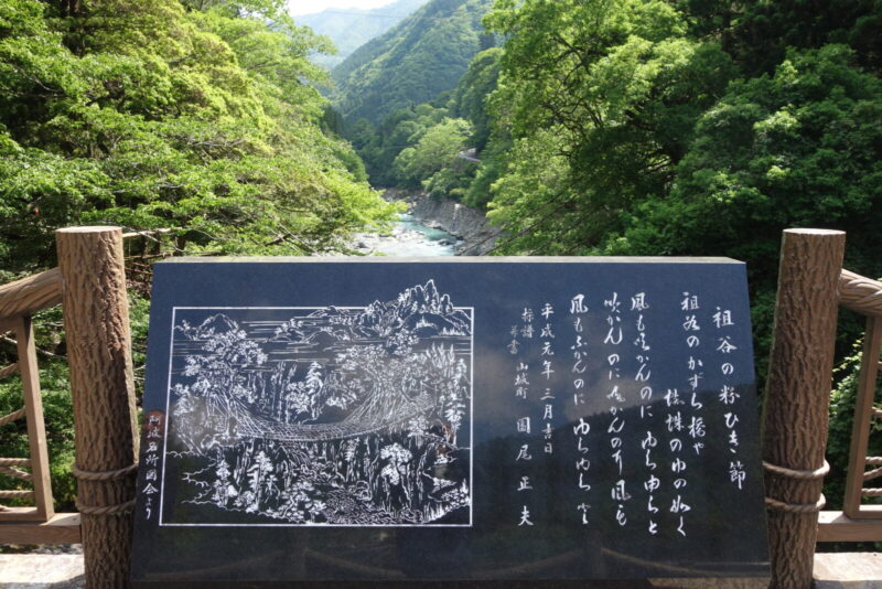 かずら橋が見えそうで見せないアングル、まず素直に石碑を読みましょう