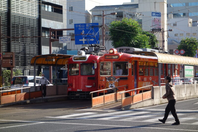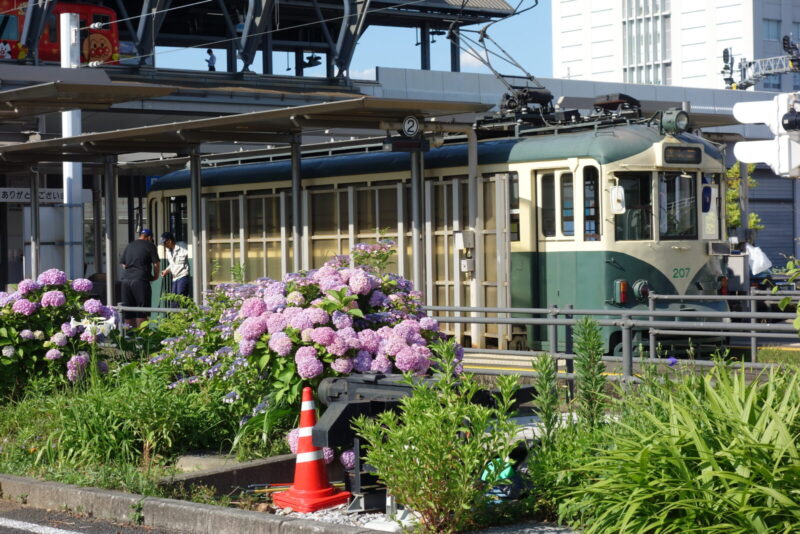 高知駅は路面電車が走っているようですね、色々なデザインの車両を目撃しました