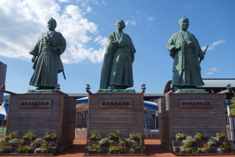 駅の近くには、何やら3人の像があり土佐勤王党三志士の像です真ん中ぐらいは誰もが知っていますよね?
