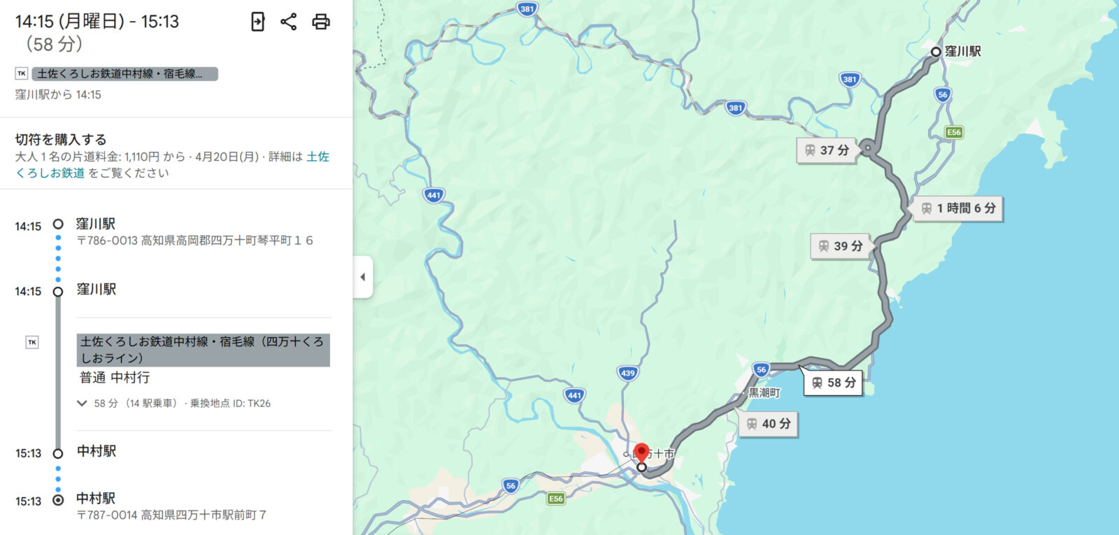 時刻15時過ぎ中村駅に無事に到着しました。