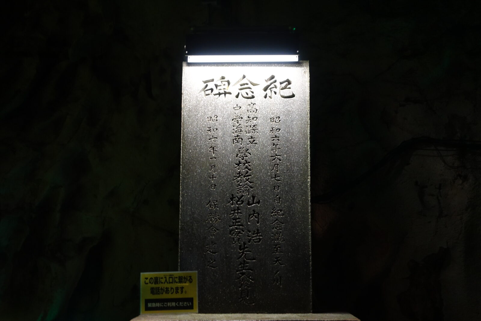 記念碑という石碑のエリアへ到着、安全の為に裏側に入口につながる電話があるようです。
