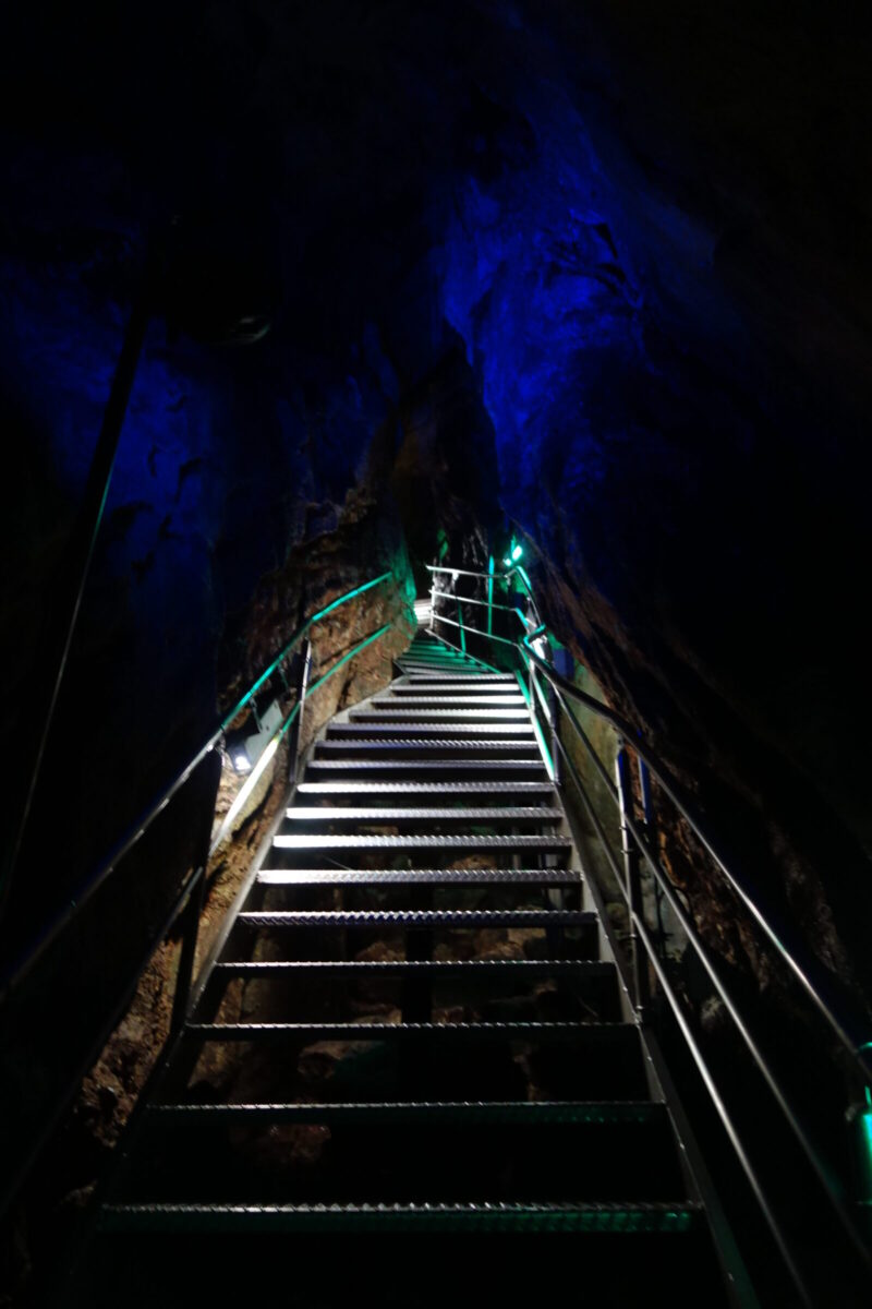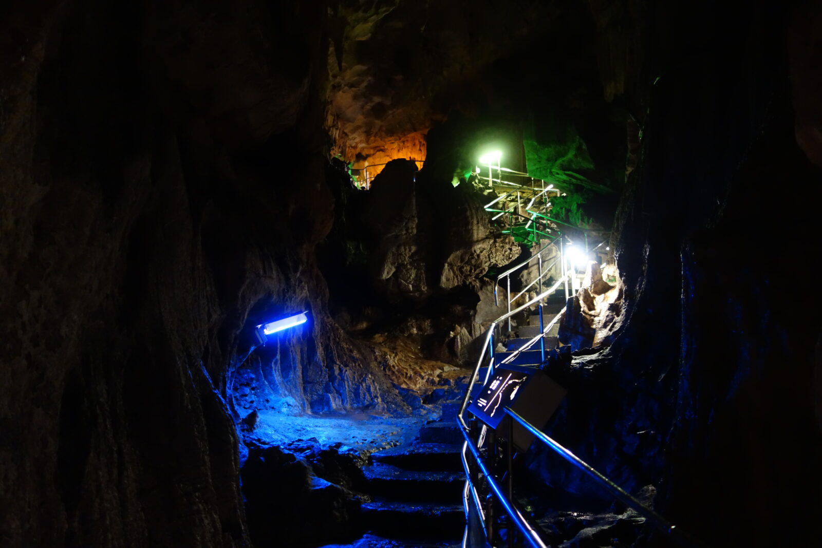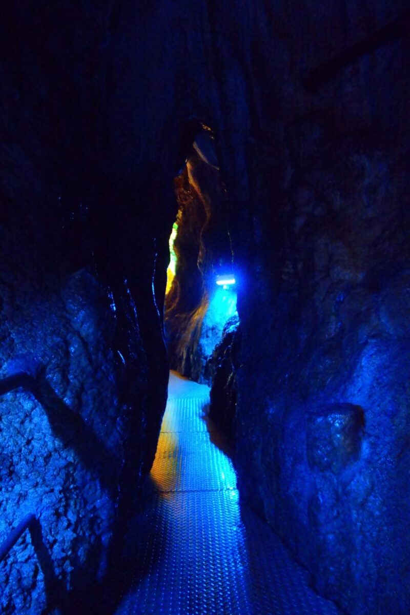 洞内を進んでいると急に青い通路に、ライトアップとはしゃれていますね