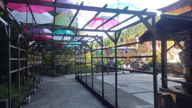 12番札所 千鶴寺の素晴らしい彩りの景色や傘や置物などに感動しましたが次の場所へ約25分かけて進みます