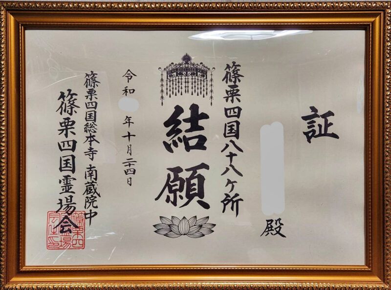 実はね札所の何ヵ所で、有料でお遍路を達成した証(自己申告)として証明書を発行してもらえるんだよ!!