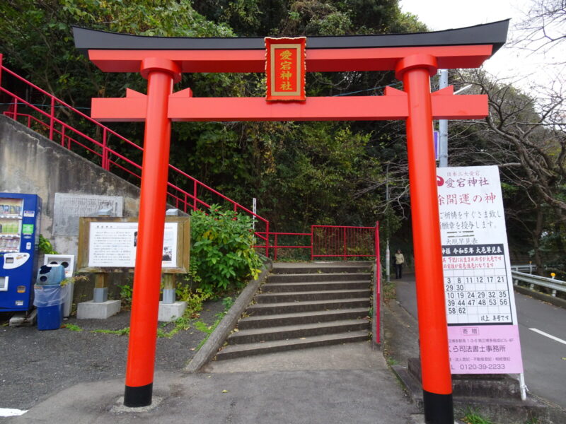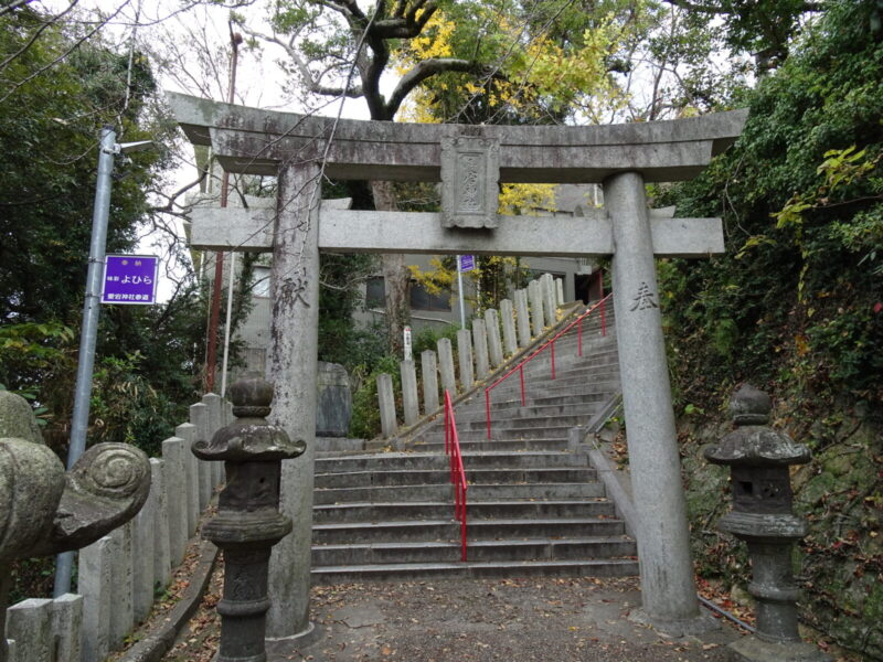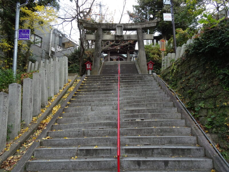 二人は神社の紹介に目を通して、鳥居から続く階段を登っていきます。