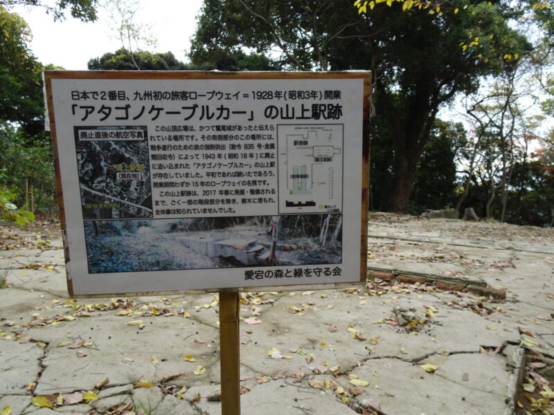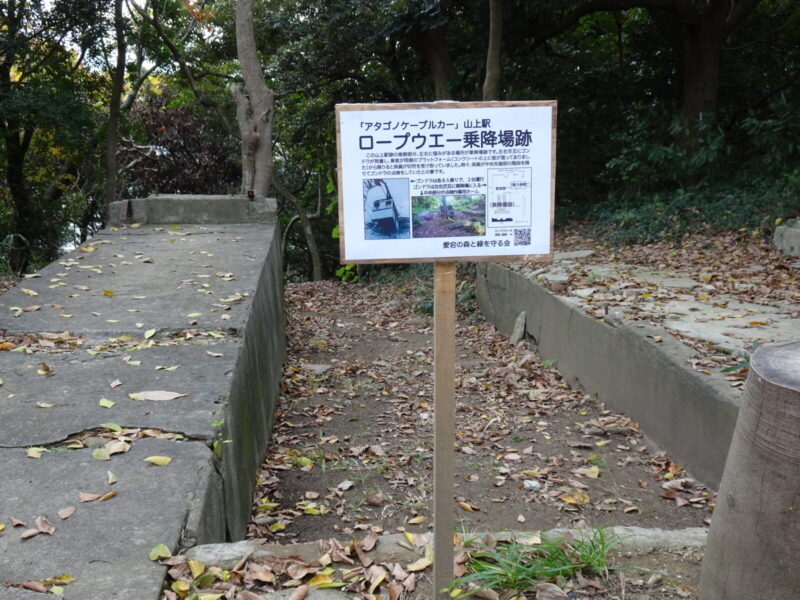 愛宕山ケーブルカー跡地は神社参拝の為に昭和3年に建設されたらしいな、だが戦争の犠牲になったらしく昭和18年に幕を閉じたらしいぜ。
