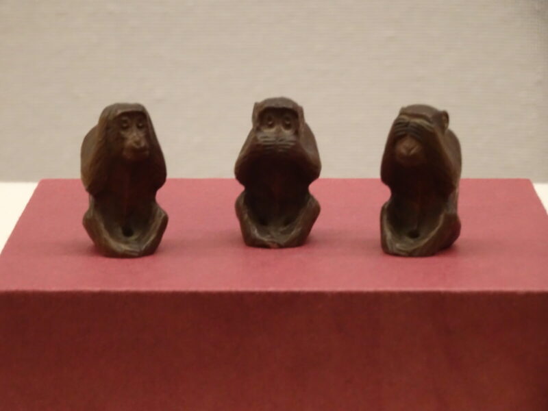 左の写真はあれですね「見ざる聞かざる言わざる」でしょう。