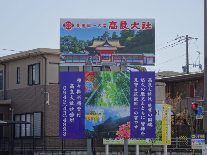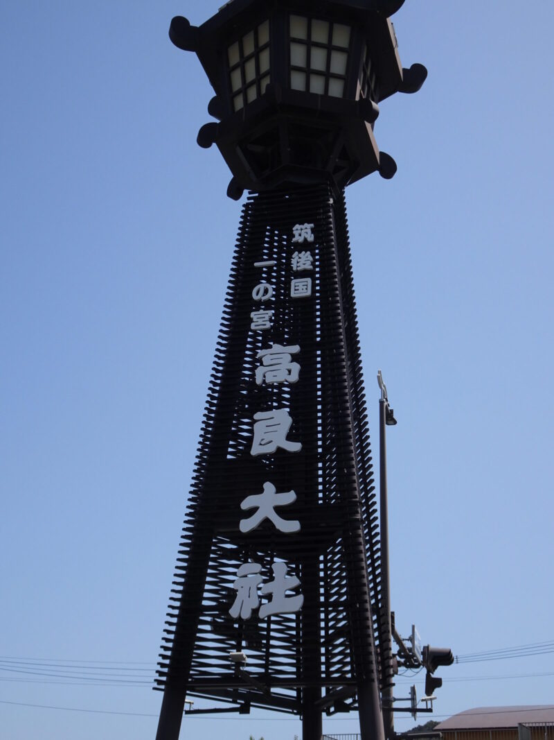 駅から歩いて20分くらいでしょうか、高良大社の案内板などが見えてきましたが本殿はまだまだ先みたいです、あくまで入口みたいなものでしょうか?そして道路に大きな鳥居が見えてきましたよ。