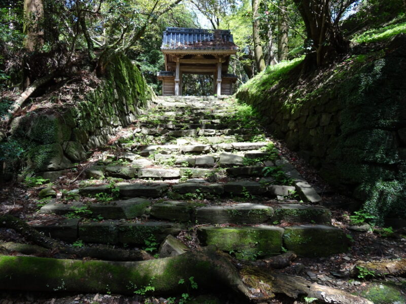 またも同じような階段の先に門が見えています、さきほどよりはしっかりしたつくりに見えますね見にいきましょう。