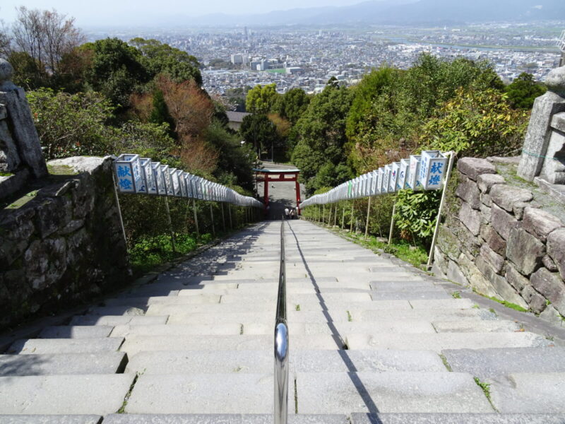 そして山道を進んで色々撮影して見学していきましたがやっとゴールが見えてきました、ここを登れば高良大社の本殿はすぐ近くです。ちなみに駅から1時間半経過しています。