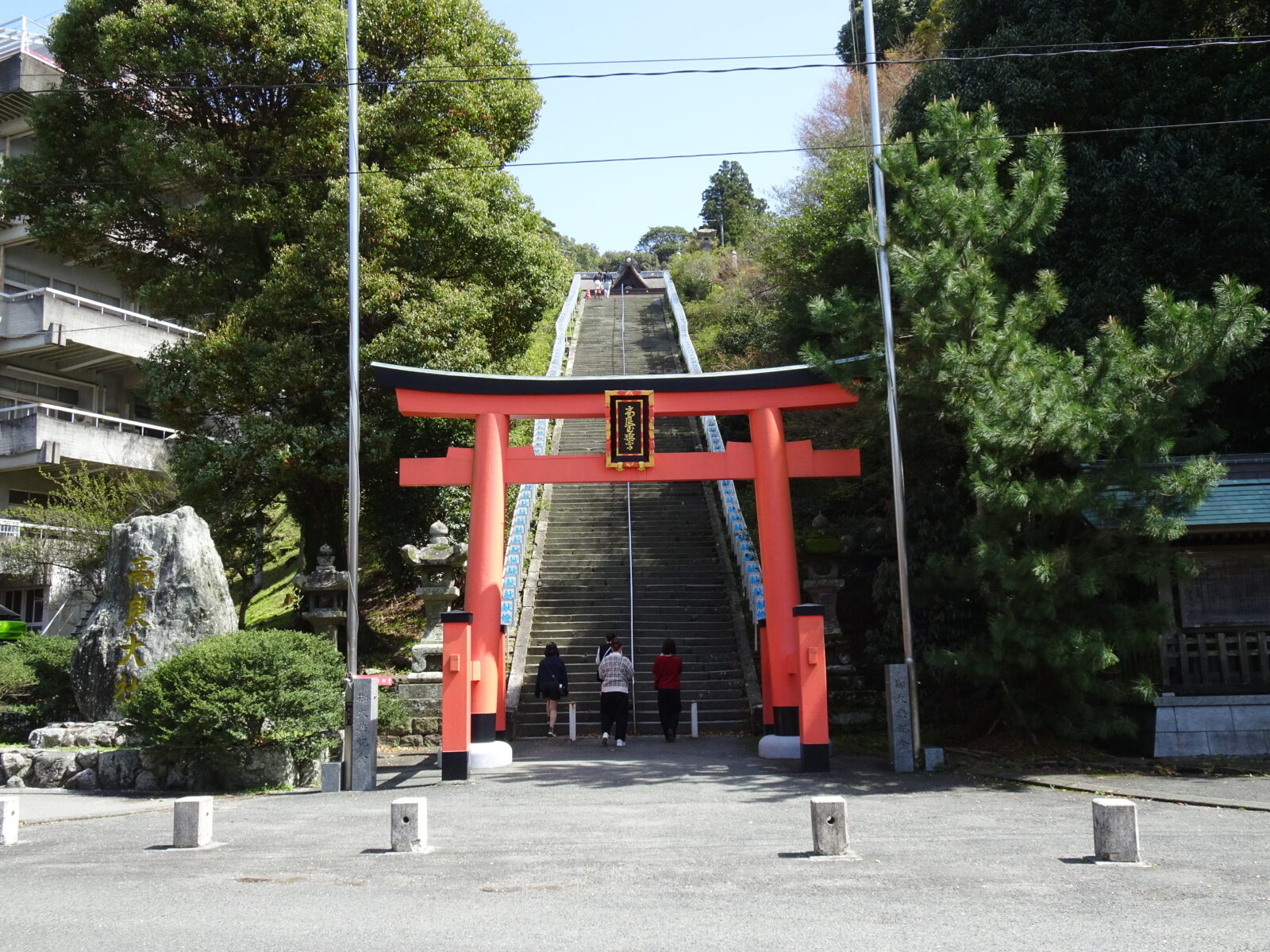車が普通に行き来している場所に構えている大きな鳥居は石造大鳥居というらしいです。今までにない鳥居の出現にるんは結構驚いていましたね。
