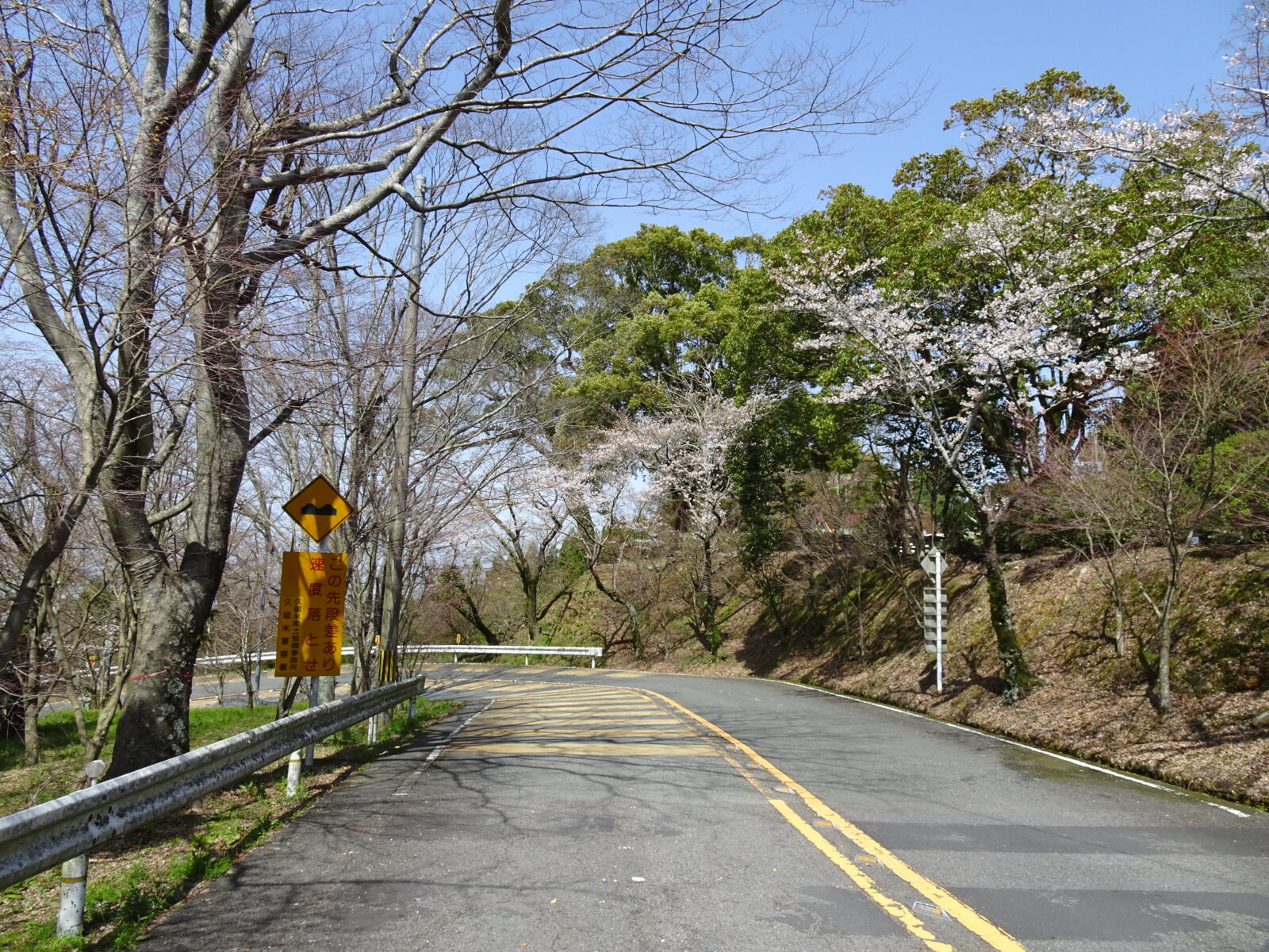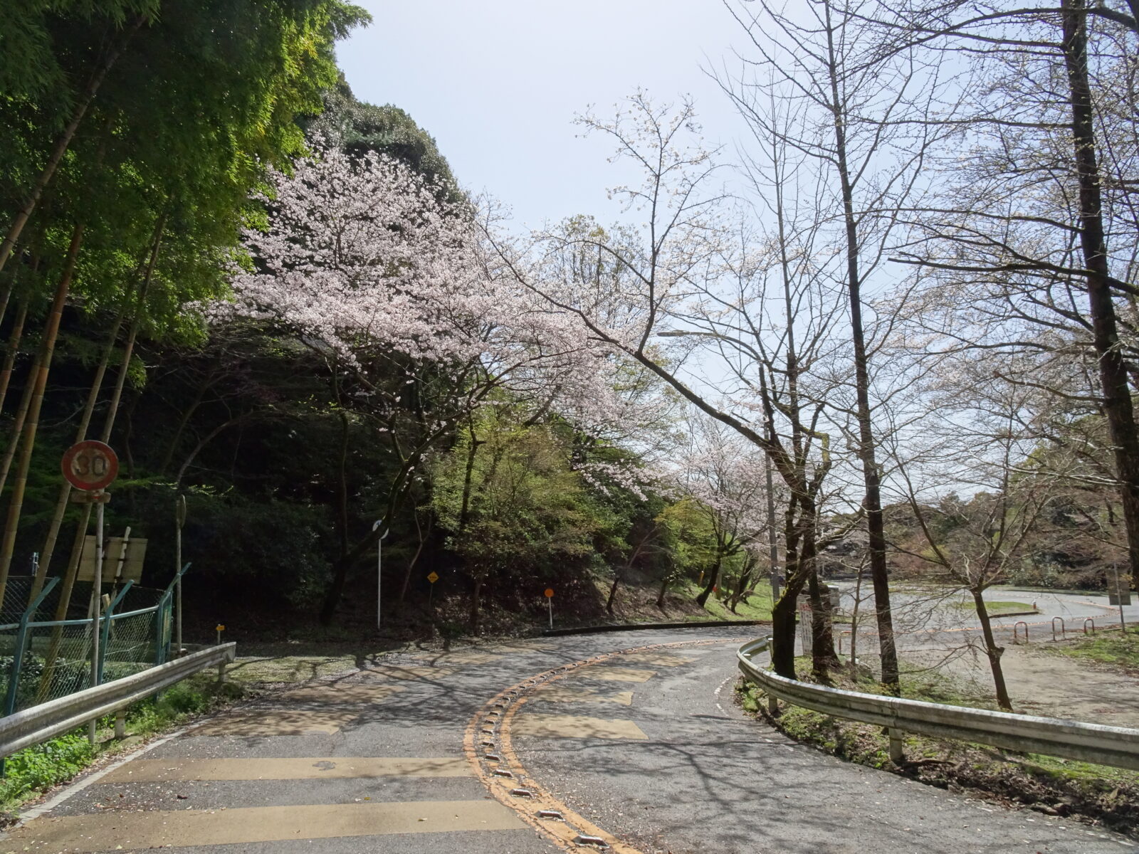 それは車道です!!歩道なんてありませんので隅を進んでいきます、この季節でしか見れないであろう桜を見ながら帰ろうと思ったわけです。