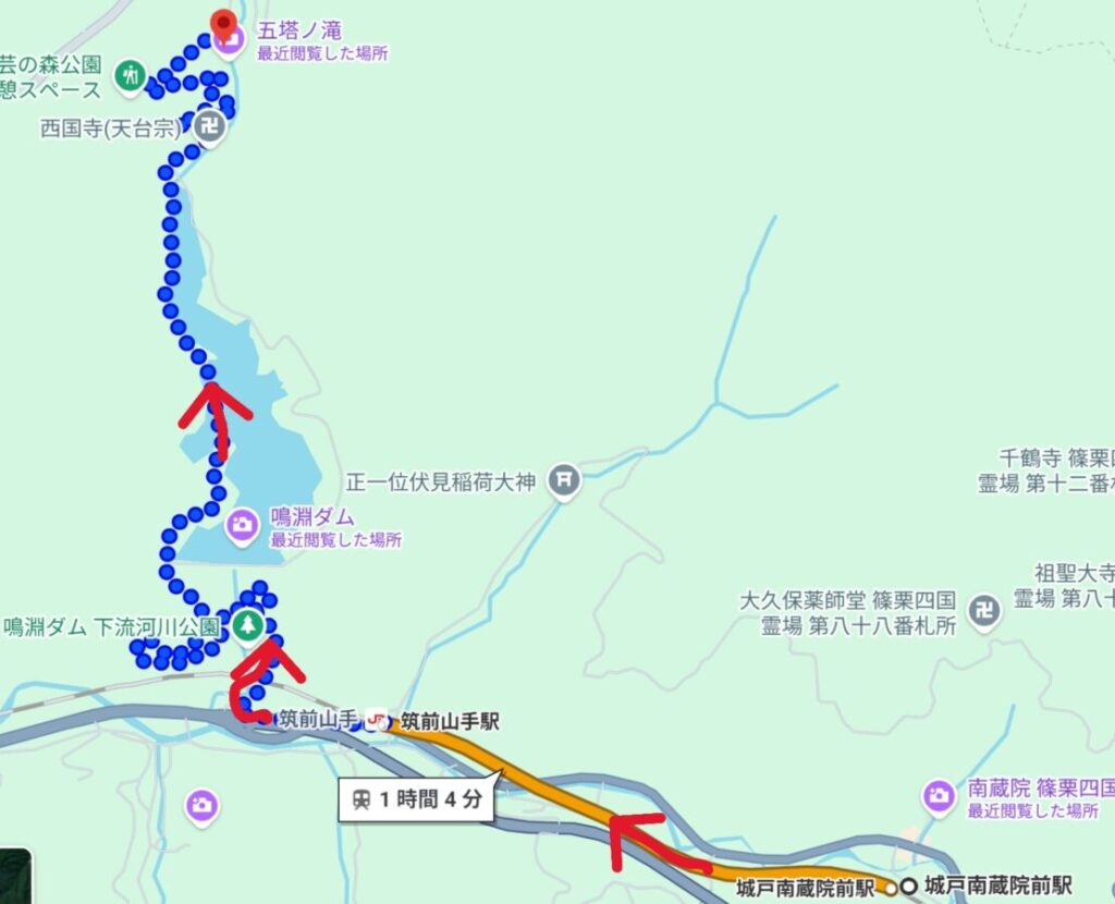 福岡県篠栗町の鳴淵ダムから五塔の滝へ
