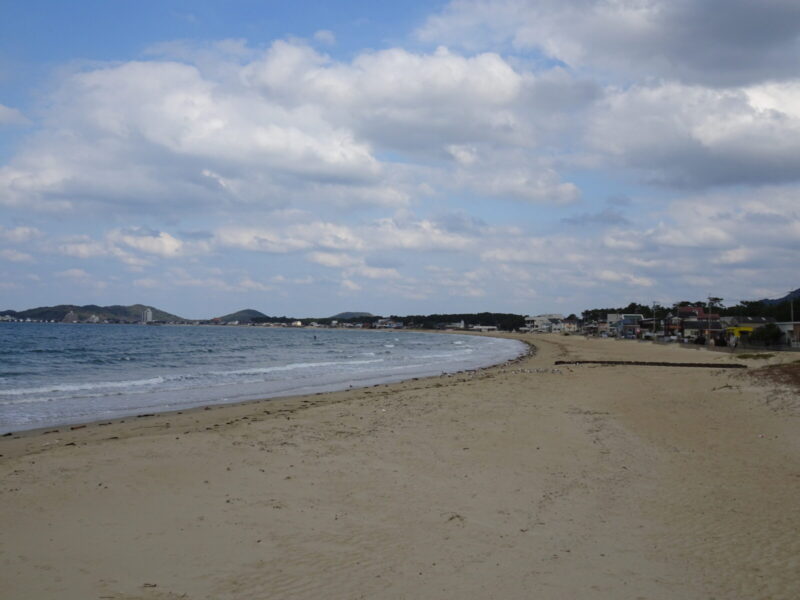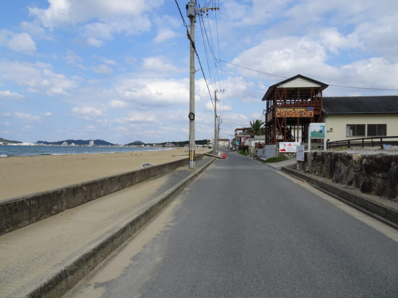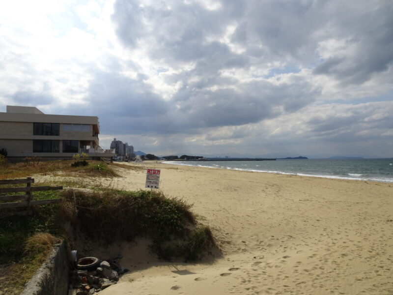 駅から徒歩で西へ進み福間海浜公園へ到着したら海沿いを北に進みます。