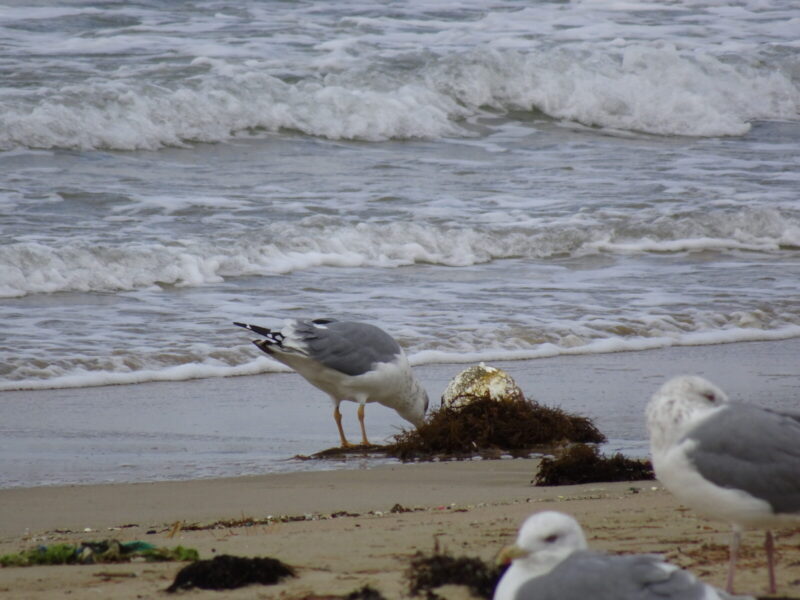ふと近くを見るとウミネコ?でしょうか砂浜でくつろいでいました。
