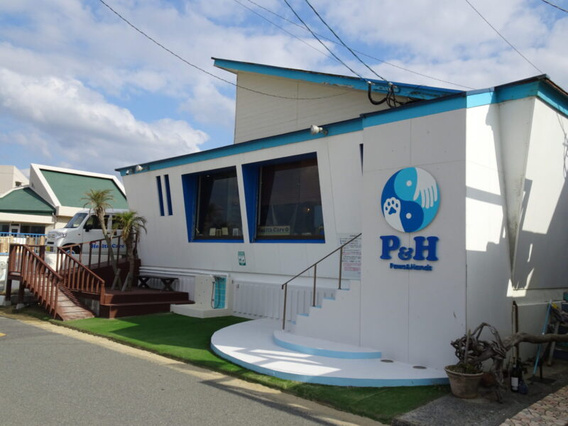 海にある建物と言えば青と白ですよね、海の家かと思ったらここはワンちゃんの病院みたいですね。