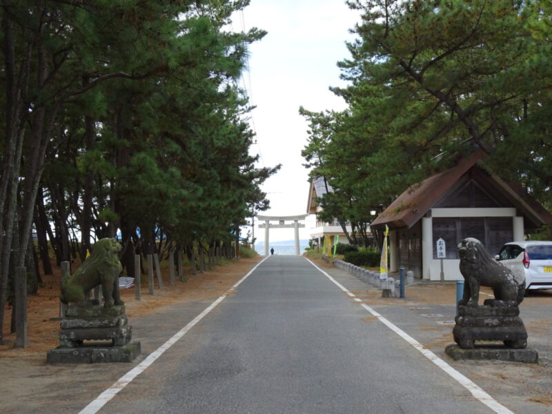 休憩を終えたるんたちは今回のメインの宮地嶽神社へ向かいます、上の画像でわかる通り道路が一直線になっているのがわかるでしょうか?そうですこの直線の道こそが「光の道」と言われる所以です。今回はそれを見る為の旅行ではないので撮影はできませんでしたが、いつか撮影に来たいものです。
