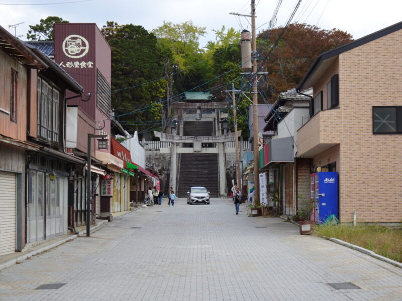 鳥居をくぐり道路ではなく石でできたタイルみたいな参道を進んでいきます、車ももちろん通ります。