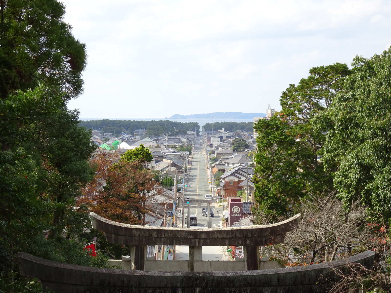 この神社から海のほうを見た時に一直線に見えるというわけだな、たしかに夕日が沈んでるところを撮影できたらすごい写真が見れそうだぜ。